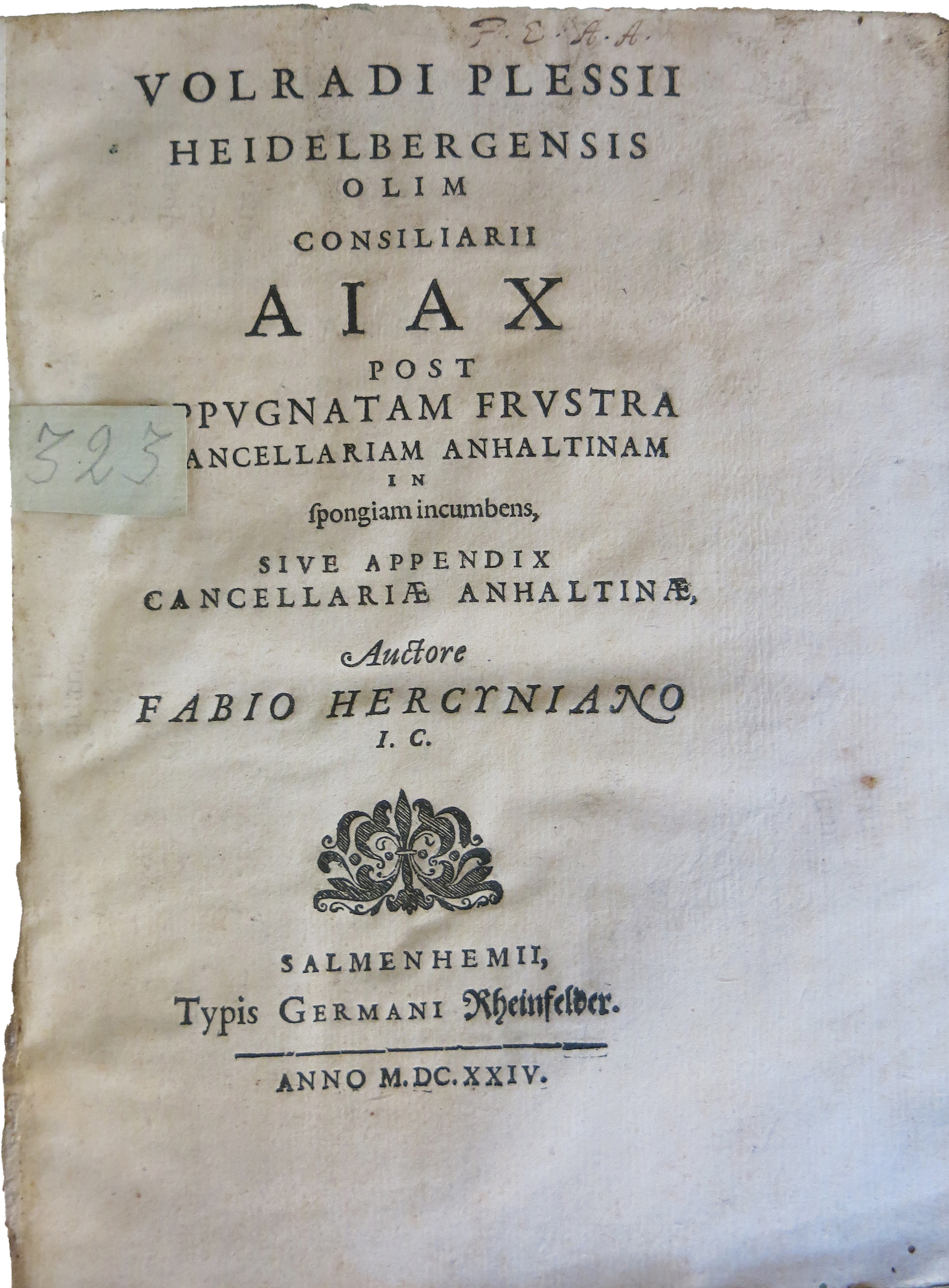 Nakladatelské údaje: Salmenhein : Rheinfelder, Germani, 1624